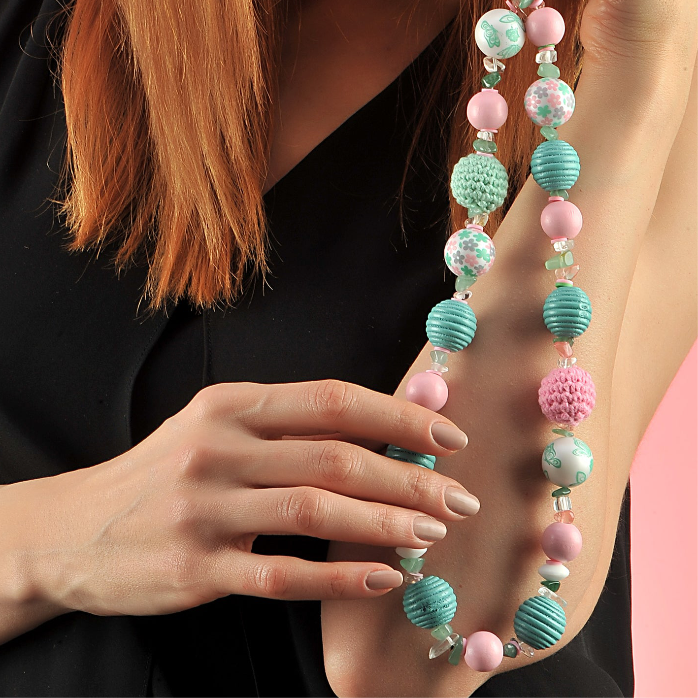 Ahşap, Fimo ve Akrilik Boncuklardan Oluşan 34 cm Uzunluğunda